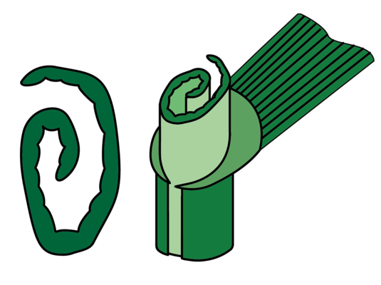 The leaf may be rolled or folded in the bud. Rolled leaves are easy to roll between you fingers.