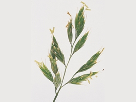 | Inflorescence | Panicle approx. 15 cm long with 1 side branch at the lower nodes. Upright initially, then spread horizontally. Spikelets have long pedicels, usually 5–9 florets which flower in April/May. Glumes rounded at the top, lemmas ovate, awn-tipped, often purple. |