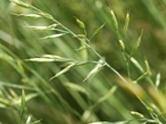 | Fruit | Grain mostly 4–6 mm long, lemma tipped with awns and fringed with short hairs, the dark caryopsis is visible, the 1–2 mm long pedicel is bulbous at the top. TSW 1.0–1.5 g. Caryopsis dark brown with ventral furrow. |