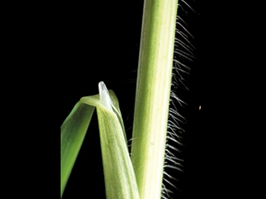 | Leaf | The emerging leaf is folded, the leaf blade open, slightly ribbed and lightly haired. The edges of the leaves are fringed with hairs. Leaf sheath slightly hairy and closed right up to the top. Short ligule, no auricles. |