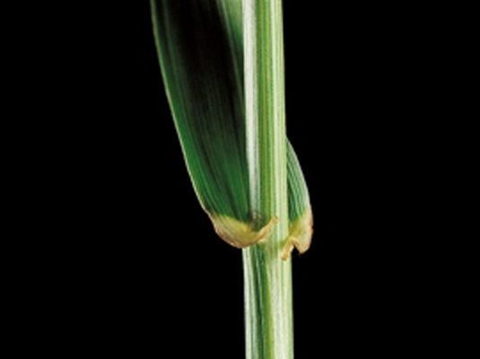| Leaf | Emerging leaf rolled, leaf sheath open, underside of leaf very shiny, ligule short, white and smooth-edged, auricles broad, well-defined and enclosing the stem, leaf blade moderately wide (approx. 10 mm) light to dark green. Pronounced ribs on upper side of leaf. |