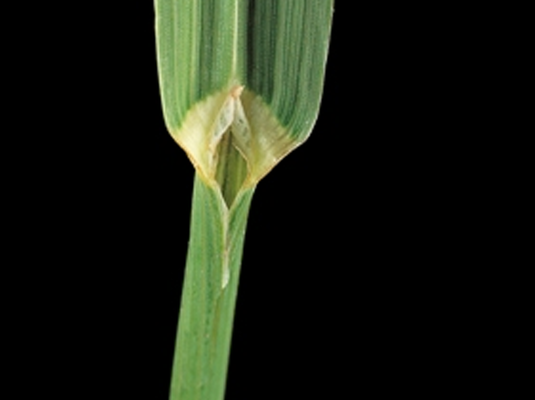 | Leaf | Emerging leaf rolled, leaf blade open with slight ridge. Leaves glabrous, underside dull and coarse. Ligule short, auricles absent. Leaf sheath glabrous and greenish grey; tightly sealed beneath the base of the blade, edges closed. |