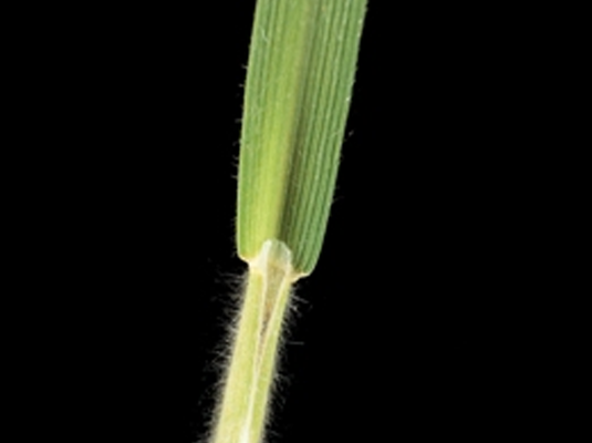 | Leaf | Emerging leaf rolled, leaf blade open. Lower and upper side of leaves have dense covering of soft hairs. Leaf sheath tightly closed around the base of the leaf blade. Ligule medium long, slightly pointed at the back. Auricles absent. |