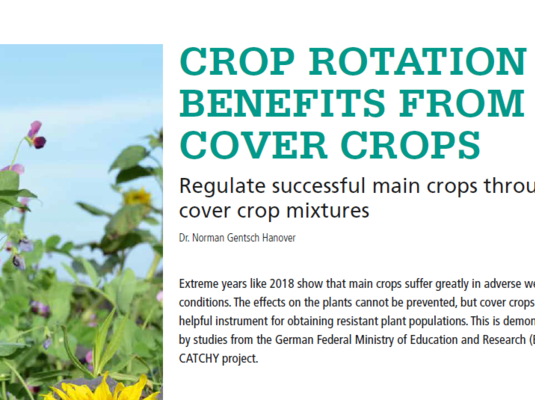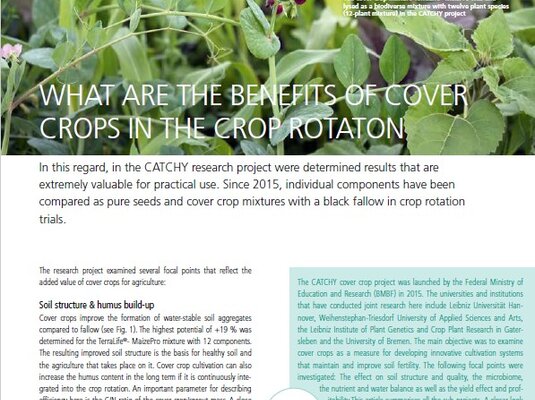 The CATCHY catch crop project was launched by the German Federal Ministry of Education and Research in 2015. The main objective was to use catch crops to develop innovative cultivation systems that maintain and improve soil fertility. The following focal points were investigated: The effect on soil structure and quality, the microbiome, the nutrient and water balance as well as the yield effect and profitability.