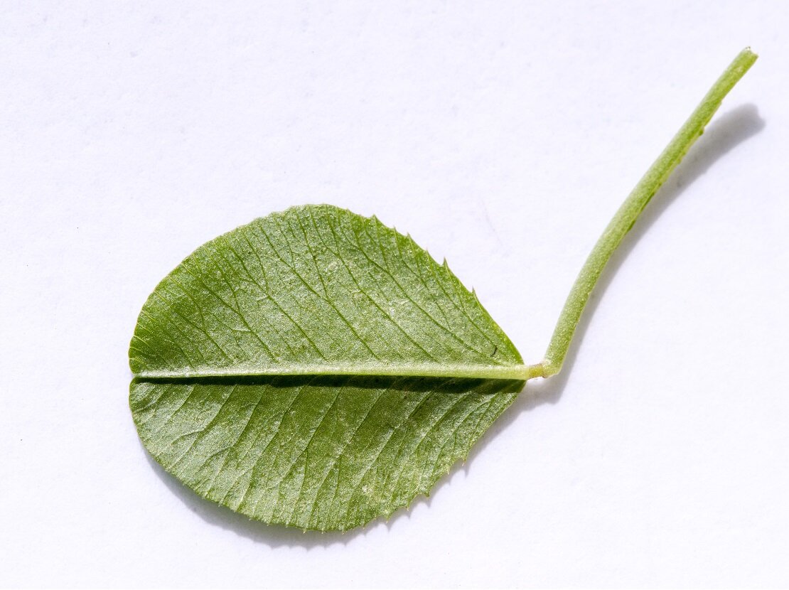 - Leaves: stalked, oval, hairless, toothed margin