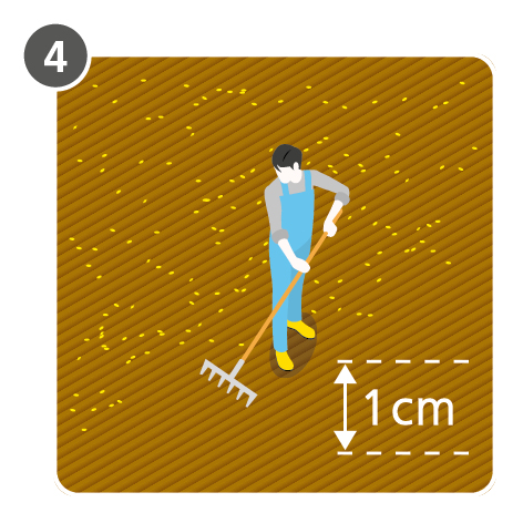 After sowing, the seed must be incorporated about 1 cm deep into the soil. The incorporation ensures that the seed is covered, promotes germination conditions and enables the seed to emerge quickly and evenly.