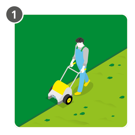Reseeding should be carried out if the lawn area is weedy/mossy or has a higher percentage of gaps. Depending on the amount of gaps or weeds, it is up to the lawn owner to choose the necessary management measures. In the case of smaller defects it is advisable to repair them. The following lawn renovation measures can be carried out: