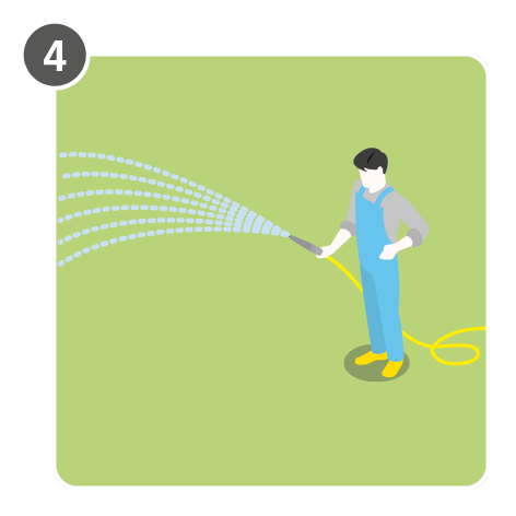 For the germination of the repair seed it is essential to keep the area moist in the first two weeks after the repair. The top layer of soil should always be a bit moist so that the lawn seedlings do not dry out. Irrigation is one of the central measures for a successful establishment of overseeding.