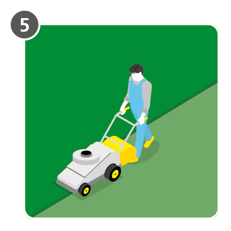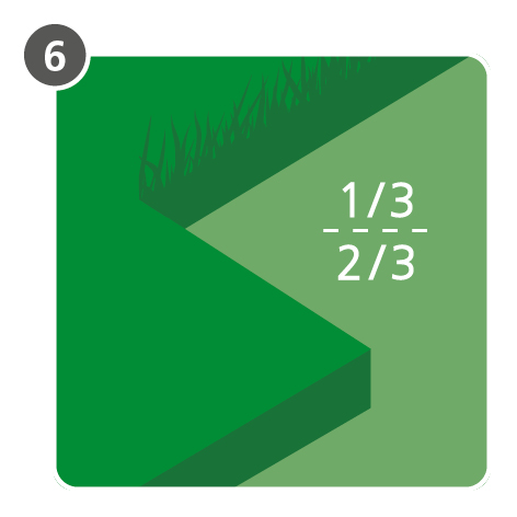 The "rule of thirds" dictates when and how often a lawn should be cut. Depending on how the lawn is used and the recommended cutting height, a maximum of 1/3 of the leaf mass should be mowed off. If the cutting height is too low, unwanted lawn grass and plants will be encouraged to migrate.