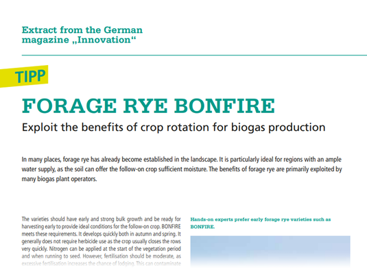 In many places, forage rye has already become established in the landscape. It is particularly ideal for regions with an ample water supply, as the soil can offer the follow-on crop sufficient moisture. The benefits of forage rye are primarily exploited by many biogas plant operators.