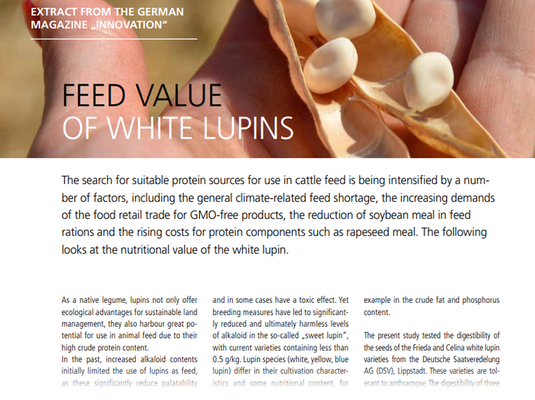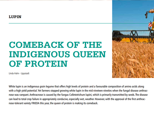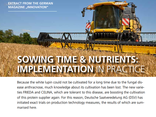 Because the white lupin could not be cultivated for a long time due to the fungal disease anthracnose, much knowledge about its cultivation has been lost. The new varieties FRIEDA and CELINA, which are tolerant to this disease, are boosting the cultivation of this protein supplier again. For this reason, Deutsche Saatveredelung AG (DSV) has initiated exact trials on production technology measures, the results of which are summarised here.