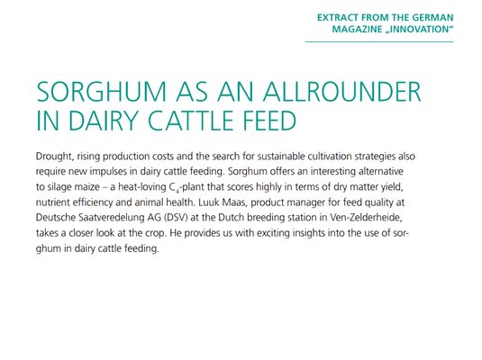 Drought, rising production costs and the search for sustainable cultivation strategies also require new impulses in dairy cattle feeding. Sorghum offers an interesting alternative to silage maize – a heat-loving C4-plant that scores highly in terms of dry matter yield, nutrient efficiency and animal health. Luuk Maas, product manager for feed quality at Deutsche Saatveredelung AG (DSV) at the Dutch breeding station in Ven-Zelderheide, takes a closer look at the crop. He provides us with exciting insights into the use of sorghum in dairy cattle feeding.